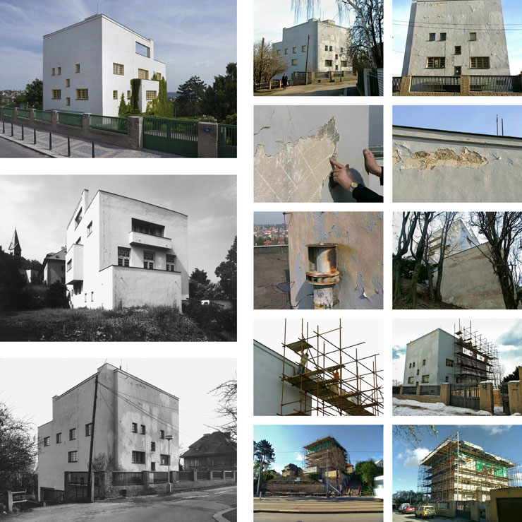 Při obnově Müllerovy vily jako takové, součástí jejích exteriérů i komponentů bezprostředně navazujícího okolí, šlo především o stavební konsolidaci a konzervaci původních materiálů, přičemž v přiměřeném rozsahu (na základě exaktního vyhodnocení speciálních průzkumů) byl ve specifických případech nezbytné uvažovat o zásazích rekonstrukční povahy (rekonstrukce lícní omítkové vrstvy fasády, výměna části podezdívek plotu z režného zdiva, obnova části hydroizolací a horních pochozích ploch teras domu z litých asfaltů a pod.). Usilovat o uplatňování kritérií, charakteristických pro metodu „restaurování architektury“, znamenalo v tomto případě chránit a restaurátorským přístupem ošetřovat i ty stavební výrobky a materiály, které jsou v jiných případech posuzovány jako běžné a tudíž nahraditelné stejným typem materiálu (například obklady z bílých typových kachlíků v koupelnách). Restaurátorská činnost se zaměřila na restaurování dochovaných truhlářských výrobků, jež jsou součásti stavby (okna, dveře, podlahy, zábradlí apod.) i souboru vestavěného nábytku