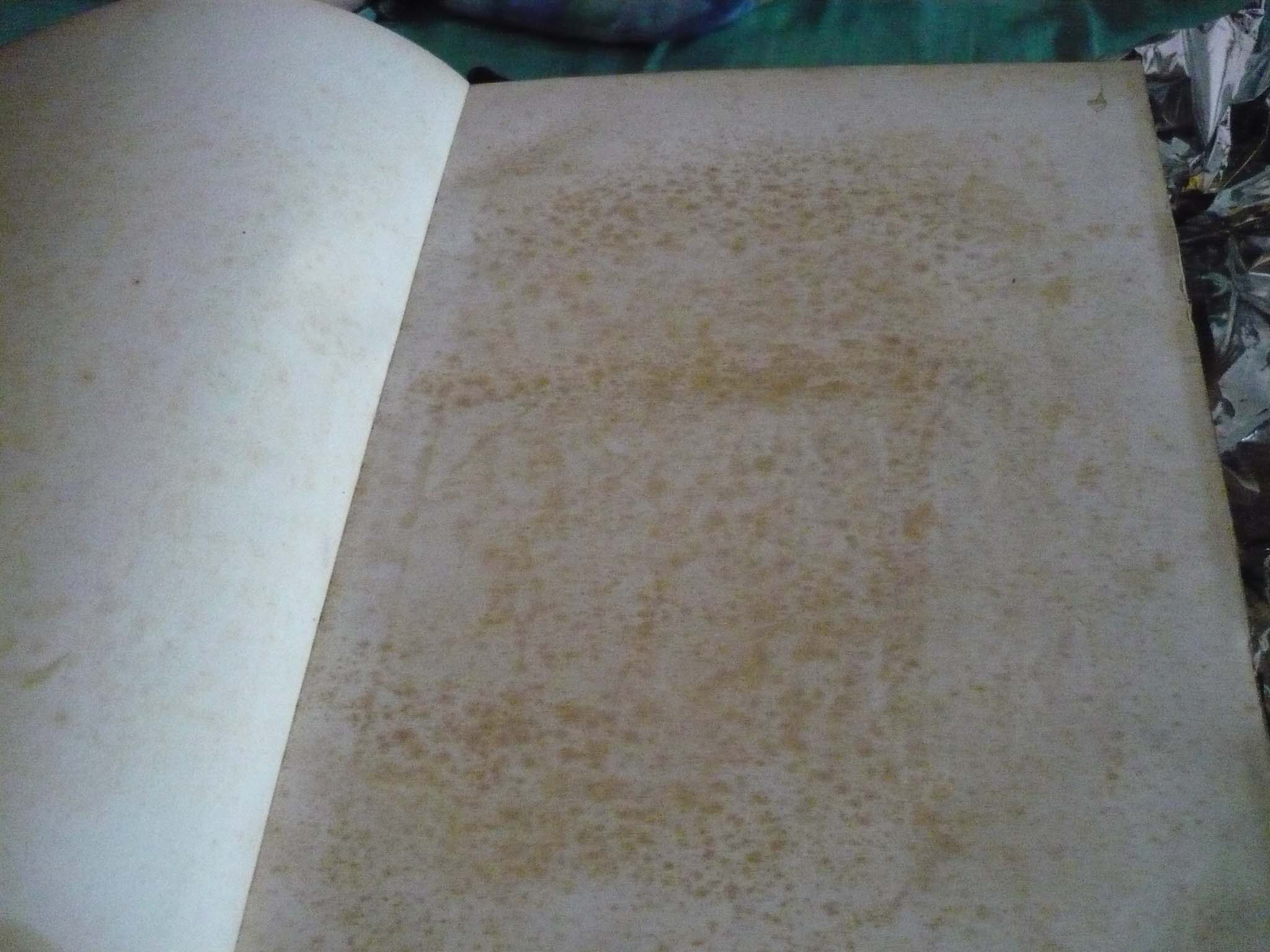 Dovolím si oponovať, Foxing nie je účinkom kyslosti papiera ale jeho dosledok. A konkrétne v tomto prípade ide pravdepodobne o kontamináciu kovmi z kovanej vazby.