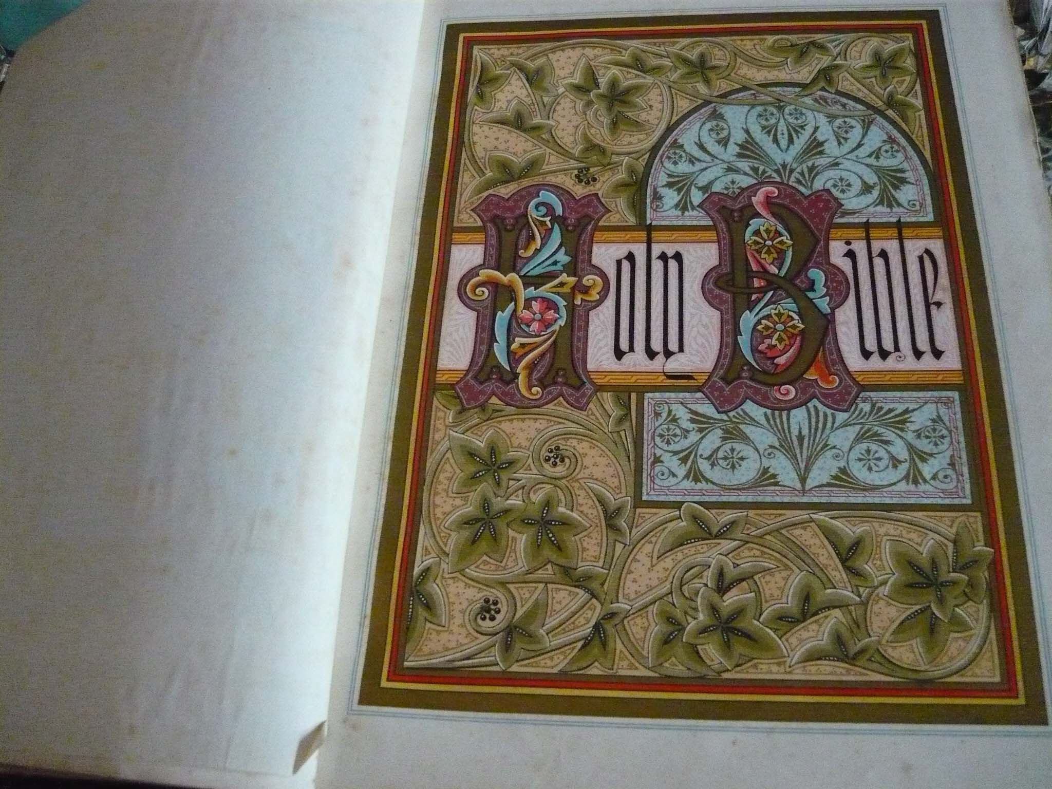 Málo informácií, pekné obrázky ale žiadne údaje o vydavateľovi, mieste a roku vydania. Napriek tomu si myslím, ze bibliu vytlacili niekedy medzi 1880-1930, co znamená, že na kyslom papieri (nepotrebuješ ani elektródu).