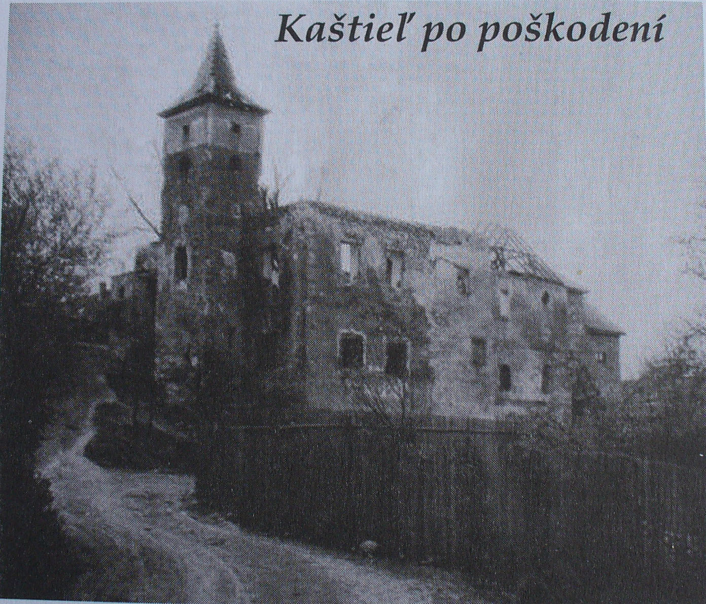 V rokoch 1936-1937 bola v hornom poschodí učbňa miestnej školy(zrejme miestnosť s krbom v ktorej bývali tie zasadnutia tekovskej stolice). Cez II. svetovú vojnu sa v kaštieli usadili nemecký vojaci. Po napadnutí partizánmi bol stred obce vypálený a kaštieľ bol tažko poškodený delostreľbou. Strecha,okná dvere, drevené schody ,podlahy keď neboli zničené priamo rýchlo schátrali. V roku 1954 boli vyhotovené architektonické plány na celkovú rekonštrukciu objektu, dodnes zachované, na ktorú obec získala 300 tisíc korún československých. Žiaľ, niekto bol rýchlejší a rozhodol o úplnej demolácii kaštieľa !!! Zároveň boli vypílené aj tri lipy, taktiež ako kaštieľ , vedené v PAMIATKOVOM ÚSTAVE Bratislava ako chránená pamiatka!!!!!