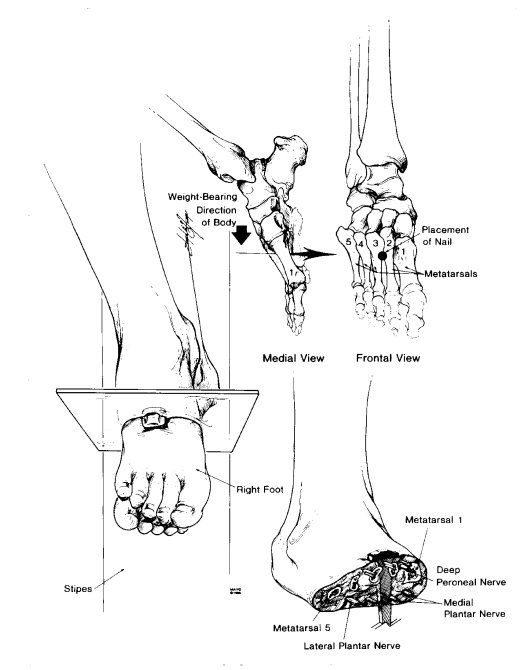 Pravdepodobne najčastejším spôsobom bolo príklincovanie. Klince nešli cez dlane, ktoré by váhu tela neudržali, ale pomedzi dve kosti na zápästí. Rimania často obete len priväzovali, aby im predĺžili utrpenie.
