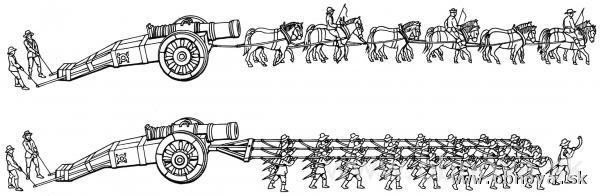 Obr.3 Transport obliehacieho dela v rannom novoveku [Jörgensen, Ch. – Pavkovic, M.F. – Rice, R.S. – Schneid, F.C. – Scott, Ch.L., 2007]