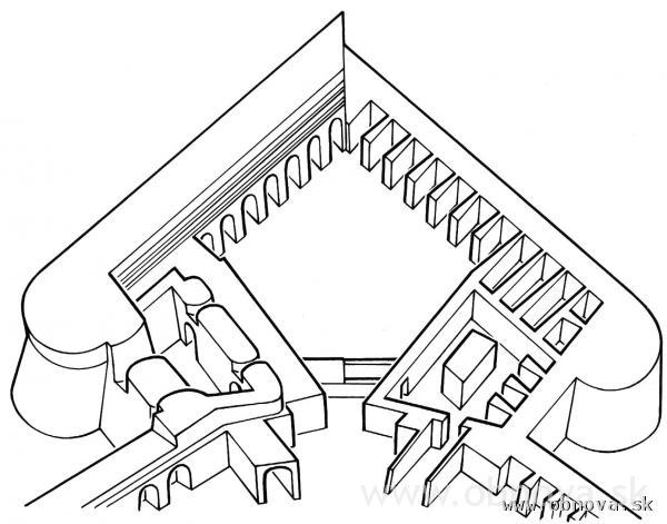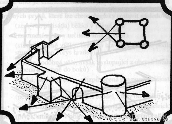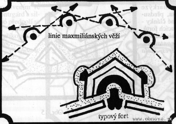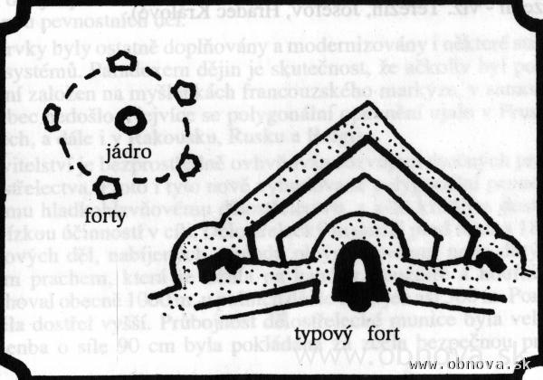 Obr. 21 Schematické znázornenie charakteristických rakúskej pevnostnej školy [Kupka, V., 1994].