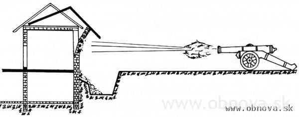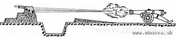 Obr. 24 a 25 Znázornenie ostreľovania valu (vľavo) a murovanej konštrukcie (vpravo) [Letošťák, Ľ., 2003].