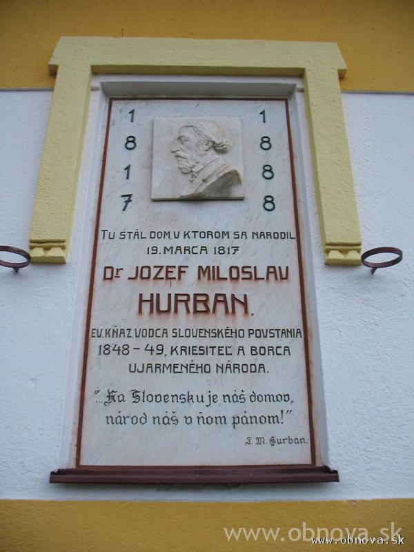 Pamätná tabuľa na mieste Hurbanovho rodného domu