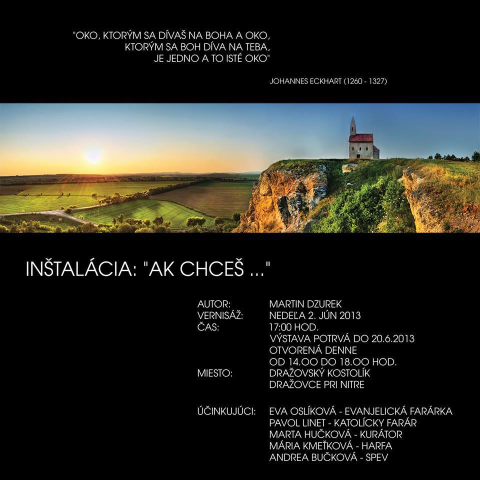 Po prvýkrát v histórii románskeho Kostola svätého Michala Archanjela v mestskej časti Nitry Dražovce bude v jeho interiéri sochárska inštalácia. Vytvoril ju sochár Martin Dzurek priamo pre tento kostolík. Ako informovala Dana Póčiková z Nitrianskej organizácie cestovného ruchu, inštaláciu s názvom „Ak chceš…“ uvedie kurátorka Marta Hučková. Vernisáž bude v nedeľu 2. júna o 17:00, jej súčasťou budú vystúpenia harfistky Márie Kmeťovej a speváčky Andrey Bučkovej. Výstava potrvá do 20. júna, prístupná bude denne od 14:00 do 18:00. Dražovský kostolík býva inak v bežné dni zatvorený. Vstup na výstavu je voľný. V prípade priaznivého počasia diela inštalujú aj v exteriéri. Kostol svätého Michala Archanjela patrí k najstarším kostolom na Slovensku, pochádza zo začiatku 12. storočia.