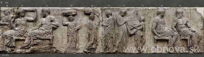 Upravené; zdroj používa namiesto správneho označenia „vlys“ slovo „freska“, namiesto správneho názvu „Parthenón“ uvádza „Partheón“.
